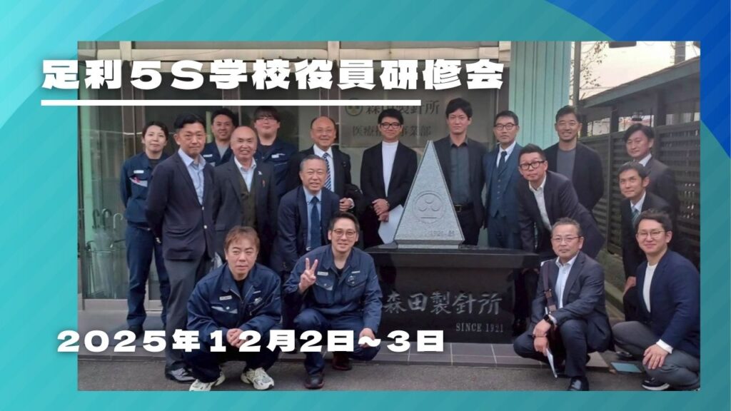 2025年11月11日 第16期後期5Sインストラクター養成講座2回目が行われました。 今回は、1回目の実践研修となります。Aチームは「東京フォーミング株式会社」様、Bチームは「ふくい保育園」様、Cチームは「佐藤金属工業株式会社」様を訪問しました。 -